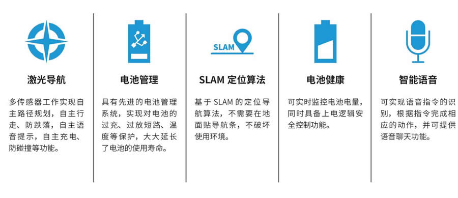 特點:具有自主行走,自主避障,防跌落,自主語音提示、自主充電、防跌落等功能。多載體設計,適合車站、校園、醫院、物流、機場、酒店、商場等多場合、多用途使用,在降低人員勞動強度的同時,大幅度節省運營成本,提G工作效率,提升服務質量,幫助實現工作場景信息化、智能化、科技化、現代化,提供良好的服務體驗。
