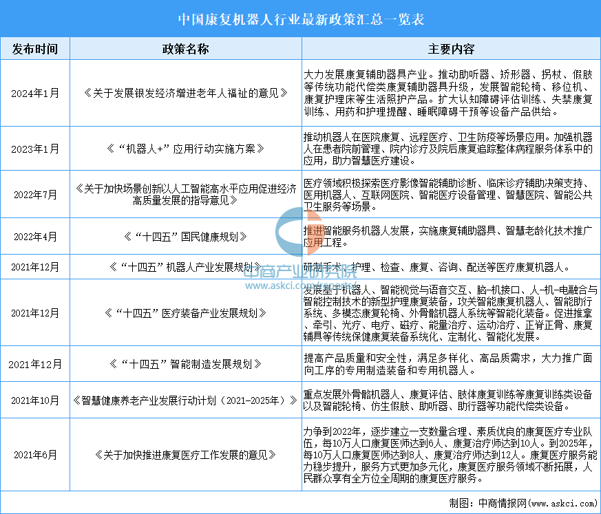 近年來,中國政府相關部門出臺了一系列政策,鼓勵和支持康復機器人產業的發展。例如,《關于發展銀發經濟增進老年人福祉的意見》提出大力發展康復輔助器具產業,《“機器人+”應用行動實施方案》提出推動機器人在醫院康復、遠程醫療、衛生防疫等場景應用,《“十四五”國民健康規劃》進一步鼓勵智能服務機器人發展,實施康復輔助器具、智慧老齡化技術推廣應用工程。政策的發布和實施將為康復機器人行業的發展提供了明確、廣闊的市場前景,為企業提供了良好的生產經營環境。
