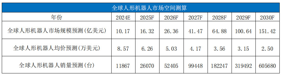 到2030年人形機器人市場規模將達到151億美元,2024-2030年CAGR 將超過56%,人形機器人銷量將從1.19萬臺增長至