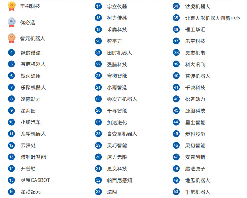 匯川技術,珞石機器人,越疆科技,節卡,埃斯頓,遨博智能,埃夫特,海康機器人,新時達,大族機器人,阿童木機器人,新松機器人,極智嘉/Geek+