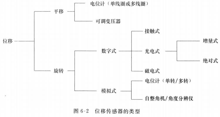 位移傳感器種類繁多,這里只介紹 一 些常用的。圖6 - 2列出現有的各種位移傳感器。
