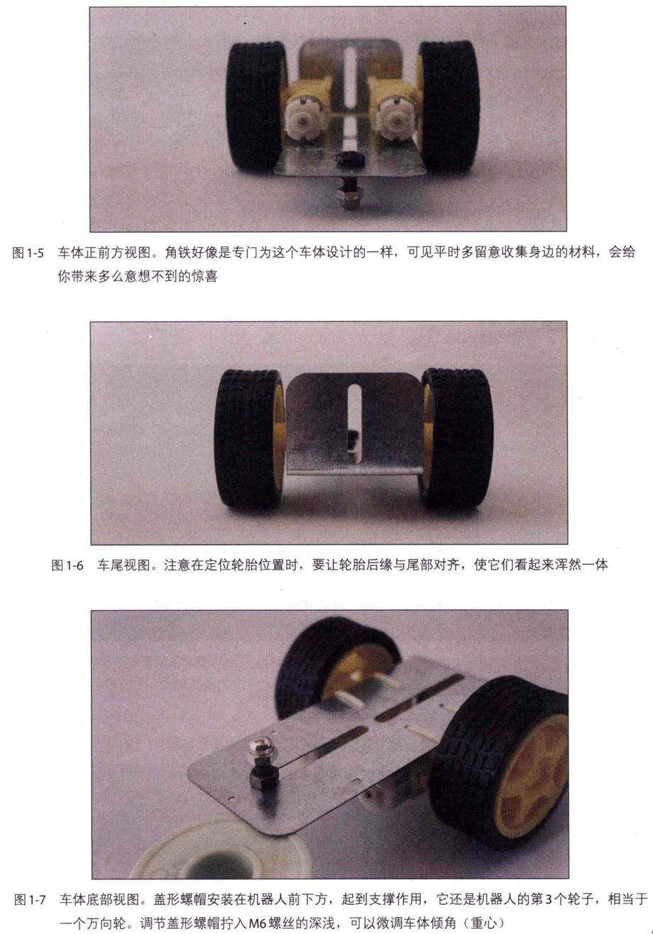 車體的裝配方法如圖1-2~圖1-7所示。讀者也可以發揮創造力,設計結構更精巧的車體。