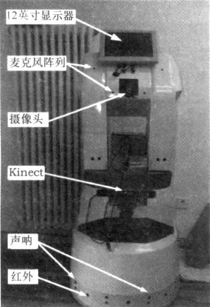 機器人本體如圖2 - 6所示,搭載的外設包括顯示器、麥 克風、攝像頭、 Kinect 、 聲吶和紅外傳感器。顯示器用于與操作用戶交互,顯示 圖形界面控制整個機器人。聲吶和紅外傳感器用于避障。該機器人選用 RGMP-ROS為其操作系統。導航功能是陪護機器人的核心功能之一,里程計和電機控制的管理是導航模塊的關鍵。里程信息定時通過串口從電機控制板中讀取碼 盤計數器獲取;電機的控制指令需要每隔10ms 發 送 一 次 。RGMP-ROS 操 作 系 統良好的實時性能使得陪護機器人的運行非常平穩可靠。