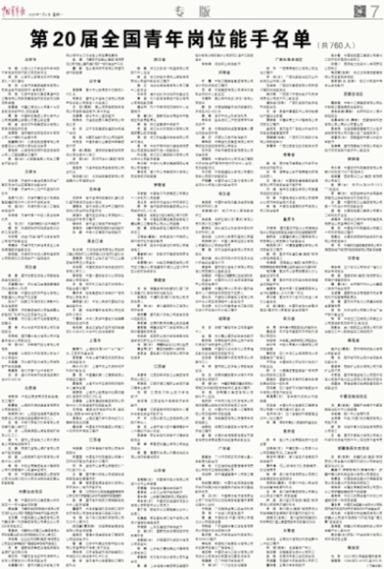 黑龍江省第20屆全國青年崗位能手名單