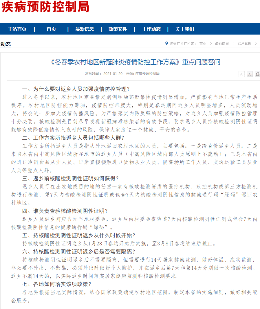 跨省份返鄉人員,返鄉需7天內核酸陰性證明,返鄉后14天居家健康監測、每7天一次核酸,當地的基層政府要對這些人進行網格化管理