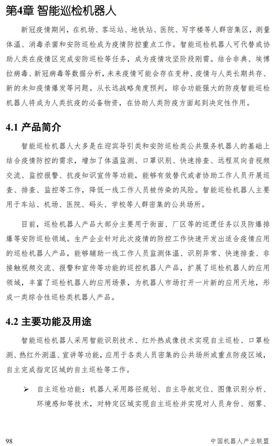 未來,巡控機器人功能和性能將不斷完備,實現自主化和智能化的運作方式,結合現有的安防監控系統,更好地服務于人群密集、工作環境復雜、感染風險G的公共場所。例如:對巡控機器人功能組件模塊化,可以根據突發事件的應用場景需求對機器人實現模塊化組裝,快速定制巡檢對象和巡檢場景;提G遠距離通信的覆蓋能力,結合多機協同管理平臺,實現多機協同作業、巡控場景全覆蓋、巡控信息實時同步,將安全風險降到低;提G在密集人群中自主識別追蹤的智能性,能夠做到快速判別異常情況,實現對運動無規律的目標快速準確追蹤;融合醫療大數據平臺與專家診斷系統,通過多維度的數據關聯分析和數據挖掘等技術,基于巡控過程中采集的數據,實現對感染人員和疑似感染人員的初篩,從而提升巡控管理水平