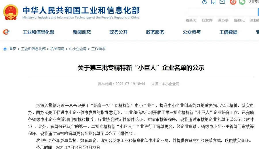 十四五時期我國將推動形成一百萬家創新型中小企業,十萬家專精特新中小企業,一萬家專精特新小巨人企業,財政重點支持500家以上小巨人企業