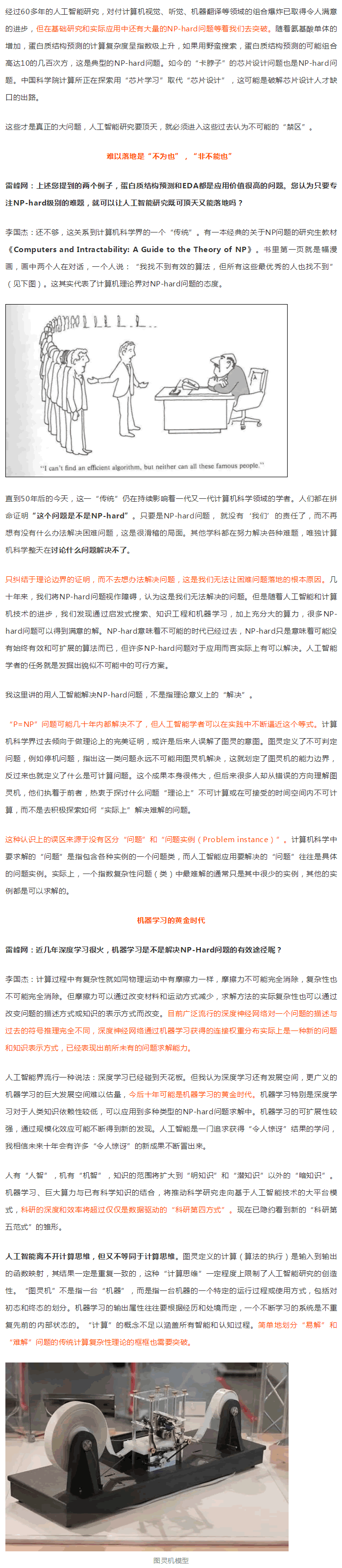 學術界的人工智能研究過分局限于約翰·麥肯錫的定義,也就是人工智能的目標是“像人”,并指出我們應該突破對智能的狹義理解。這與AI要解決NP-hard級別難題有什么聯系?