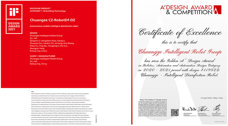 ◇在:創澤是榮獲國際CES創新獎的商用類人型智能服務機器人企業,也是國內榮獲德國歷史悠久的2021年iF 設計獎的移動式消毒機器人企業;同年,創澤榮獲意大利A'Design Award金獎。