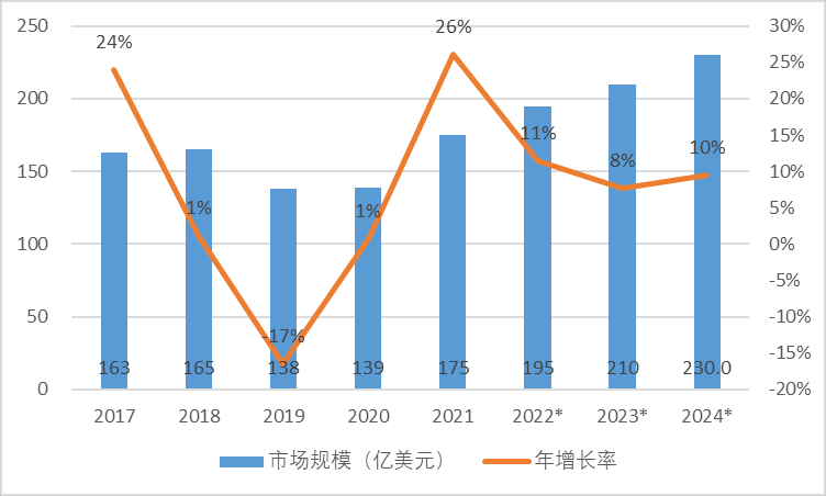 規模將持續增加, 2024 年將有望達到 230 億美元。