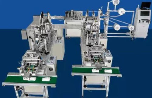 研發全自動平面型醫用外科口罩生產線及全自動折疊型醫用口罩生產線,實現卷材上料、折疊壓合、鼻梁筋上料、口罩成型、口罩切斷、耳帶上料及焊接、成品下料等工藝的全自動化生產。