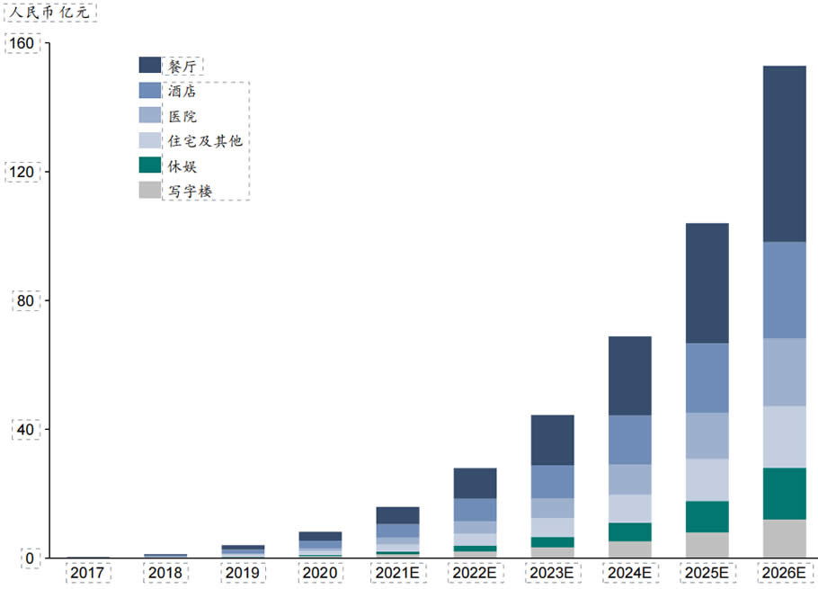 商用服務機器人廣泛應用在餐廳,酒店,娛樂,商超等場所,輔助場景運營方實現數智化升級降本增效,價值體現節約人力和管理成本,帶來服務消費新體驗