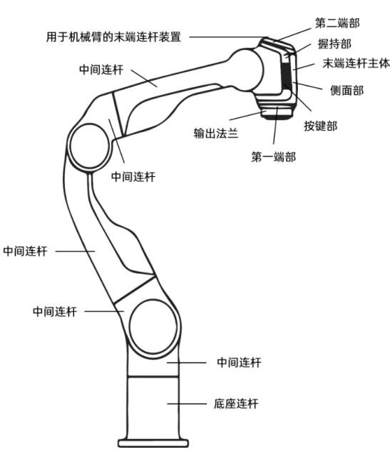 以思靈機器人機械臂產品為例,這是一種用于機械臂的末端連桿裝置,包括末端連桿主體,末端連桿主體設置在機械臂的輸出端;至少一個握持部,握持部能夠被握持,
