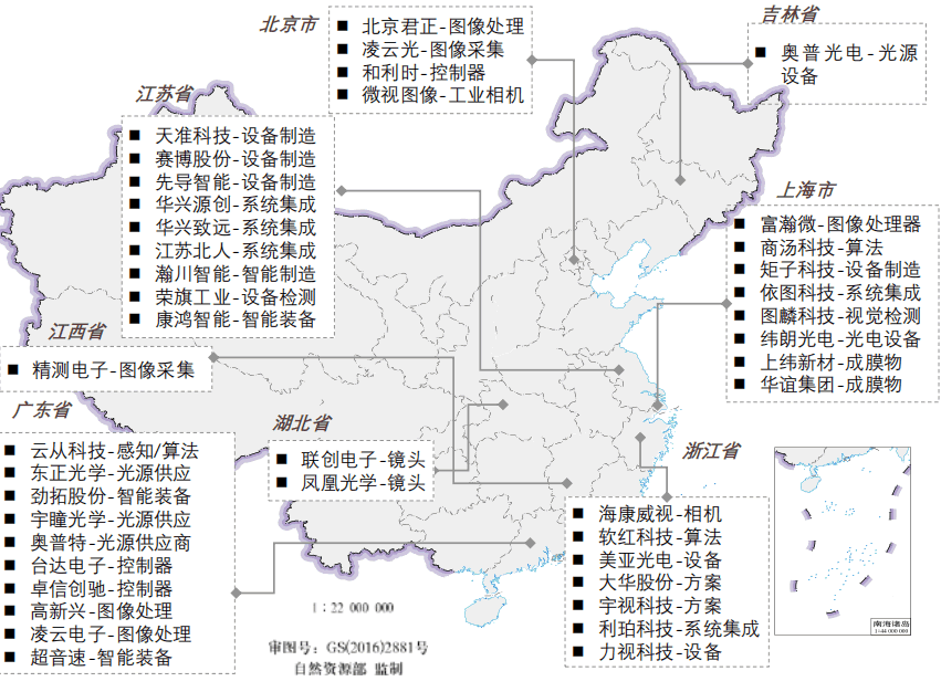 其中,廣東省在機器視覺檢測設備、算法與集成布局較為完善,江蘇省與浙江省的設備制造及系統集